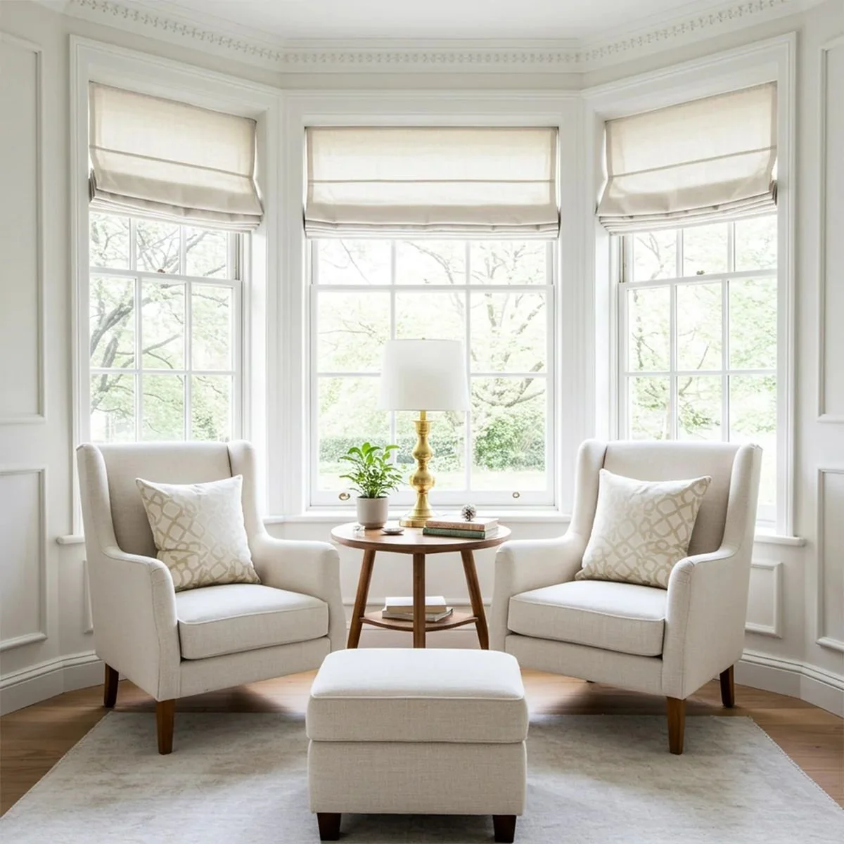 A bay window uses three panels (one fixed center, two angled sides). A bow window uses four or more panels in a gentle curve. Bays create a more angular, defined projection. Bows create a softer, rounded look.