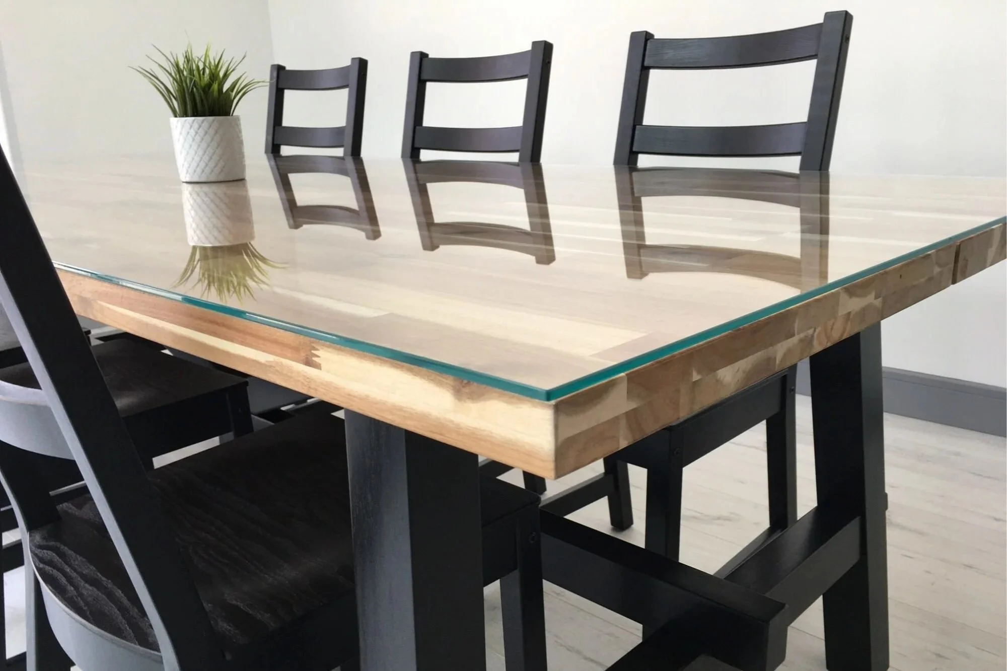 Glass Tabletops: Protect your wood dining table or antique desk with a custom-cut piece of clear glass. We measure the exact curve of your furniture for a perfect match.