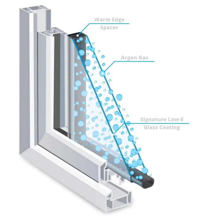 It’s not one thing — it’s the combination of glass layers, gas fills, and coatings working together. Here’s what goes into every energy efficient window we install: